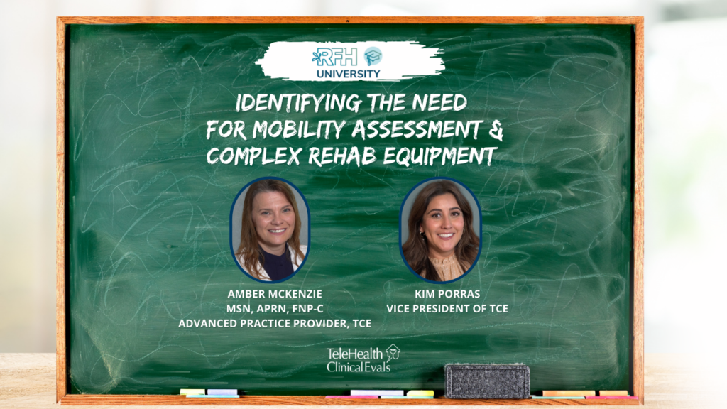 In an RFH University session, Kim Porras and Amber McKenzie, NP, from Telehealth Clinical Evals (TCE), discussed how mobility assessments and coordinated Telehealth evaluations reduce fall risk, speed complex wheelchair approvals, and improve patient safety at home.